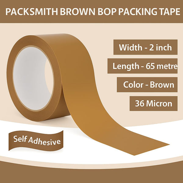 Product Details: Tape Color: Brown Width: 2 inches (48 mm) Length: 65 meters Material: High-quality BOPP with strong adhesive Application: Shipping, packing, moving, storage, warehouse...