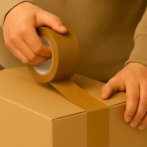 Brown packing tape is a versatile and durable adhesive solution ideal for sealing and packaging boxes, cartons, and other shipping materials. Made from high-quality materials, this tape ensures strong adhesion to various surfaces, providing a secure and reliable seal. It is perfect for both light and heavy-duty packaging needs, offering resistance to tearing and splitting. The tape is easy to apply, with a smooth and consistent unwind, making it suitable for both manual and automated dispensing. Its neutral brown color makes it an ideal choice for blending with cardboard boxes and other packaging materials.