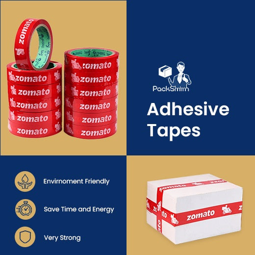Zomato Tape is a high-quality packaging tape measures 1 inch in width and 65 meters in length, offering excellent adhesion and durability for securely sealing packages. Designed for e-commerce, food delivery, and logistics, this tape ensures that packages remain sealed throughout transit. Ideal for businesses that prioritize secure and reliable packaging solutions.