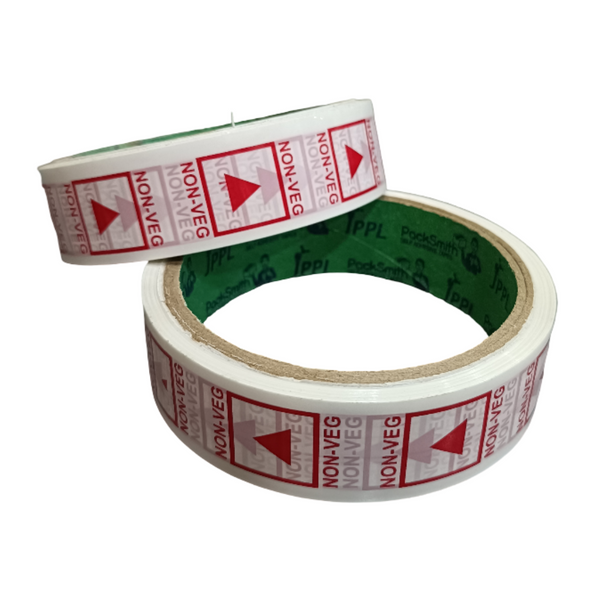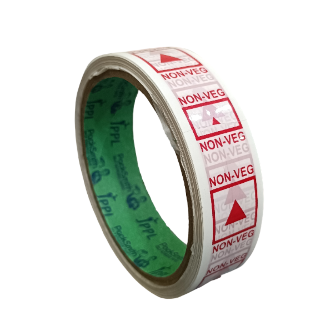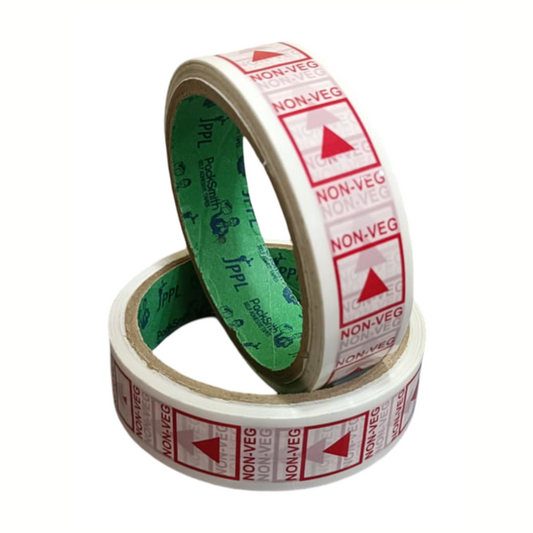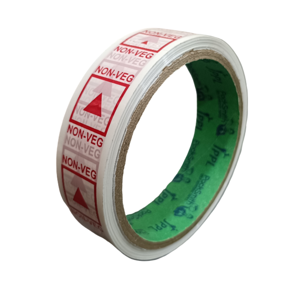 Notify me when Non - Veg Tape 1 Inch x 35 Meter | Self-Adhesive BOPP Tape with Green & Red Markings for Food Packaging – Premium Quality, Strong Adhesion, Eco-Friendly - 12 becomes available.