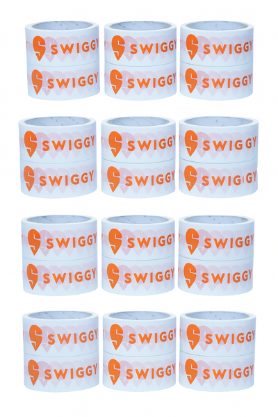 Swiggy Tape is a high-quality packaging tape measures 2 inches in width and 65 meters in length, offering excellent adhesion and durability for securely sealing packages. Designed for e-commerce, food delivery, and logistics, this tape ensures that packages remain sealed throughout transit. Ideal for businesses that prioritize secure and reliable packaging solutions.