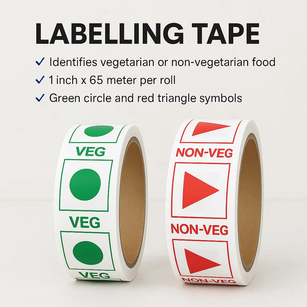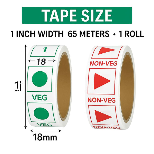 Veg Non Veg Tape 1 Inch x 35 Meter Ensure safe and clear food labeling with our Veg Non Veg tape, designed for effortless packaging...