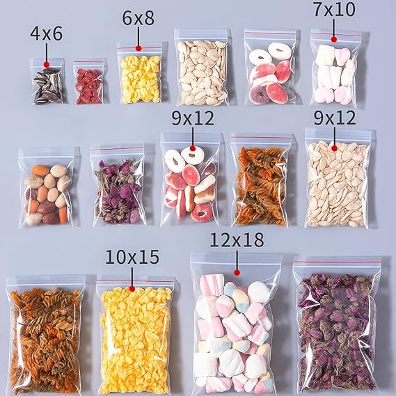 Zip Lock Clear Plastic Storage Bags | Resealable Clear Plastic Bags | Durable and Leak-Proof | Square Pouches with Press Seal for Kitchen Storage and Jewellery